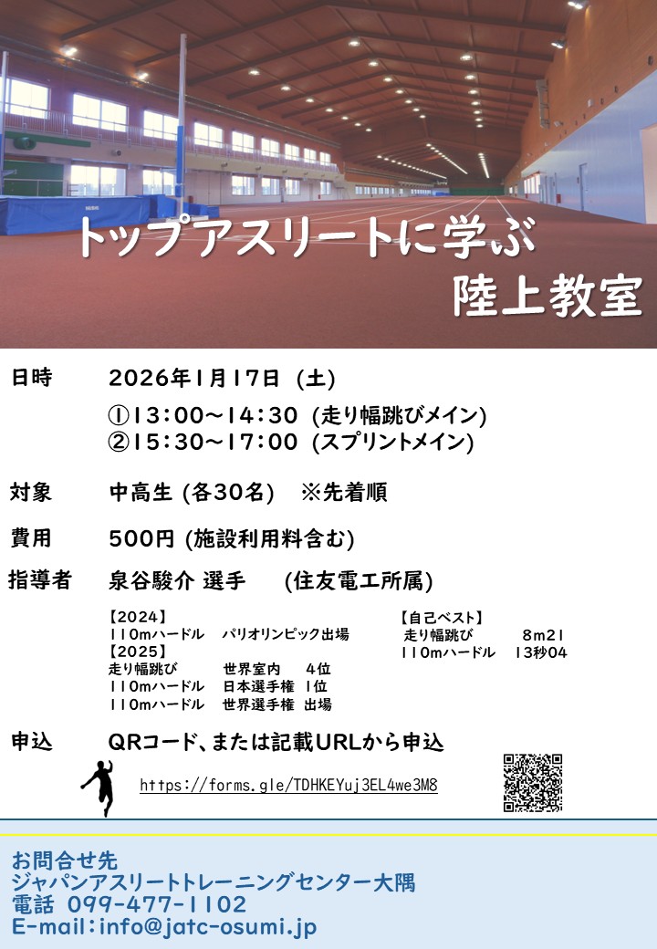 1/17㈯トップアスリートに学ぶ陸上教室(JATC大隅)